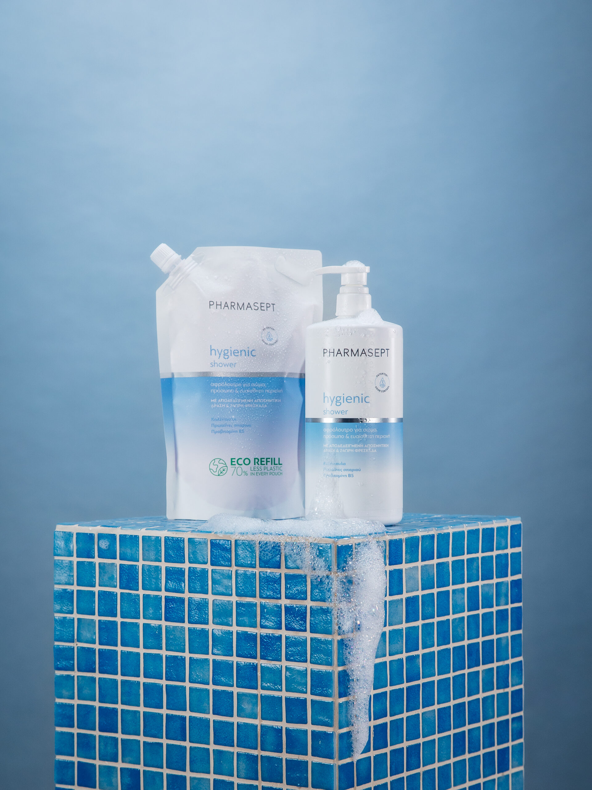 Πιστή στη φιλοσοφία της βιώσιμης κατανάλωσης, η PHARMASEPT διαθέτει το Hygienic Shower και σε eco-friendly refill pouch, μειώνοντας το περιβαλλοντικό της αποτύπωμα, καθώς η χρήση πλαστικού περιορίζεται έως και 70%